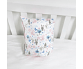 Confeccionado en tela 100% algodón, relleno de algodón siliconado hipoalergénico. Cierre de Velcro. Medidas 22x27 cm. aproximadamente.